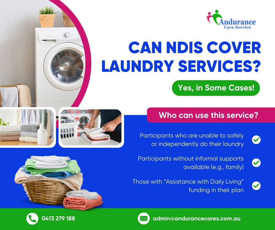 NDIS may fund laundry or linen services for eligible participants who are unable to manage household tasks due to their disability.